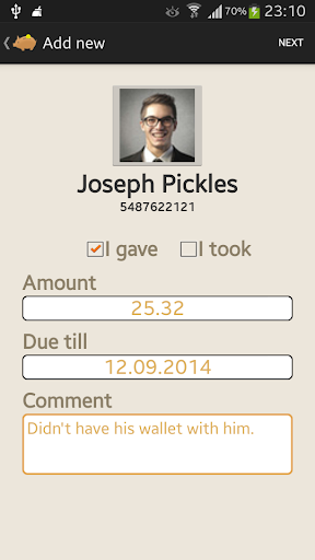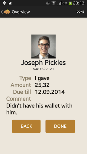 From now on never forget who owns you some money or maybe you owe them. Keep track of your debts and loans with this simple and easy to use application.