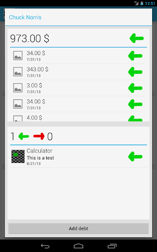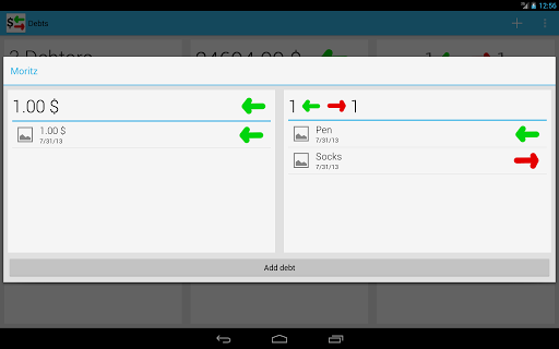 This is the perfect application for managing your debts on your phone or your tablet. Simply add money or even item debts so you'll never forget what somebody owes you or what you owe somebody.