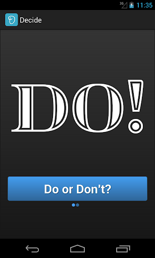 It's simple. It really is! Tap the button on your smartphone (your best friend in other words), and Decide will tell you what you really need. Swipe your screen to get different advices.