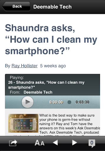 Listen to the latest podcasts and radio segments, read the latest articles, and submit a question to Deemable Tech right in the app. Also, you can get notifications on your Android smartphone whenever there is a new episode! Each week, on Deemable Tech, hosts Ray Hollister and Tom Braun answer your questions about computers, smart phones, tablets and the Internet.