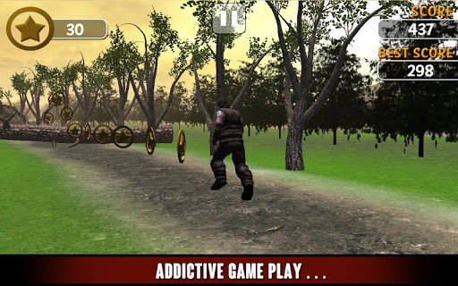 It’s an endless running adventure game where you assume the role of a 12th century medieval England farmer who is on the run from the soldiers of the duke who are right on his tail. You refused to pay the duke the quarterly tax on your harvest or produce and the duke has sent his men to apprehend you and bring you in to his court where you undoubtedly will be punished with your life. You have escaped in to the deep forest to evade arrest. The ill-famed dark, somber and gloomy forest is riddled with countless obstacles which may slow your pace down. You are now fighting on two fronts, that trying to get the soldiers off your trail and overcome the nature which has manifested its might in form of countless hurdles and obstacles lying before you in the jungle. Avoid collision with the hurdles by jumping over them and sliding beneath them with precise and meticulous timing. If you fail it might cost you your life and the game.