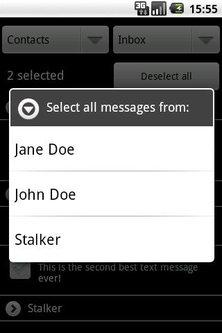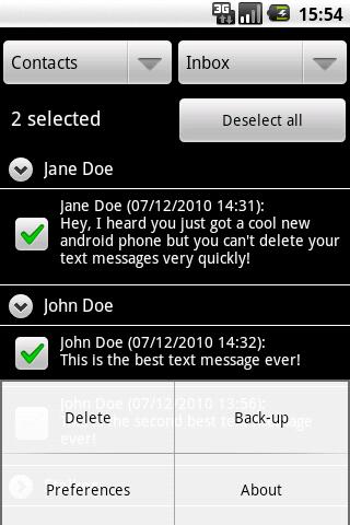 A simple program to delete a selection of text messages. There's also an option de back up the messages to an SD-card.