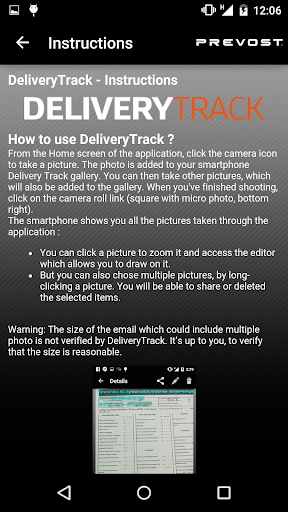 Thanks to DeliveryTrack by Prevost, you can take confirmation pictures of your deliveries, delivery paperwork or any delivery-incident. Your pictures are geo-tagged and hour-dated. Proof without question!
