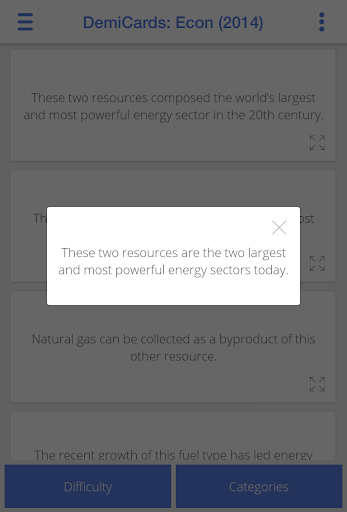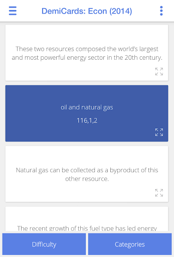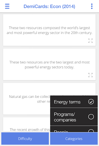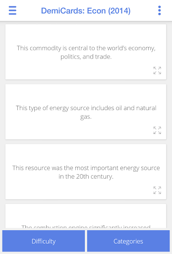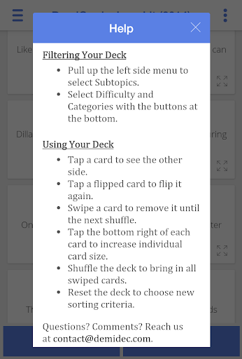 Success is in the cards: cram the entire Academic Decathlon Economics curriculum in your pocket with this easy-to-use flashcard app, perfect for studying on the go, at your desk, or in the shower (waterproofing not included). DemiDec’s indispensable Android apps break down each 2014-2015 event into 1250+ cards with a streamlined design that highlights every testable fact. Intuitive controls let you shuffle, select, and remove cards by topic, difficulty, and category with speed and precision. Filter the set down to the exact cards you need to master for the perfect score you're after.