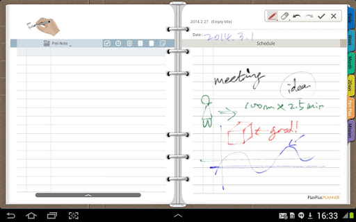 The Galaxy Note's Pen Plus function allows for specialized pen writing when using the planner.