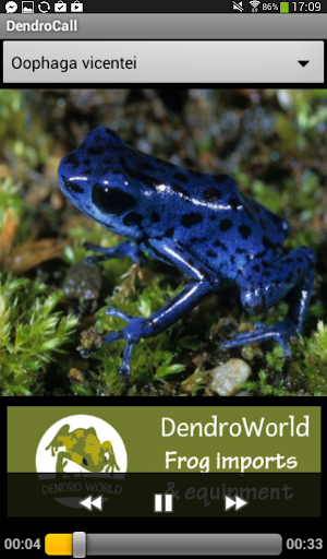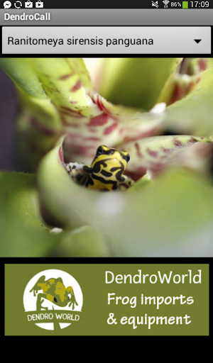 Application de chants de dendrobates. Choisissez une espèce et écoutez son chant.