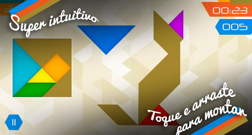 No desafio Tangram você terá 3 grupos com dezenas de figuras para você montar: animais, objetos diversos e letras do alfabeto. Ou se preferir, jogue no modo livre e crie suas próprias formas!
