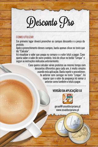 - Caso queira calcular vários produtos ao mesmo tempo com descontos diferentes para cada um, é muito simples usando esta aplicação. Basta repetir o procedimento anterior sem carregar no texto “Limpar”.