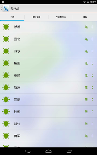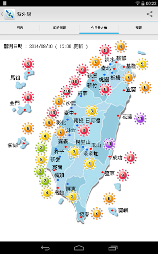 提供紫外線列表的排序方式,程式會依照您現在的位置列出從近到遠的觀測站。請放心,我們不會儲存您的任何位置。