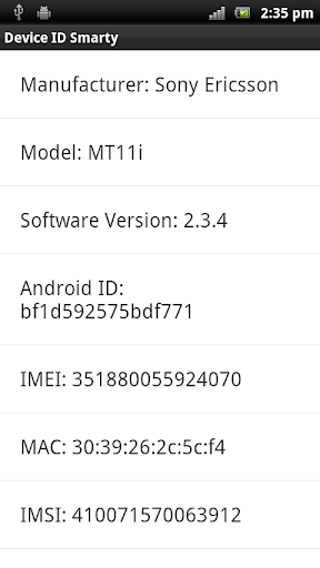 It’s not just free but a very easy to use app in the market to get your Device ID/Android ID,IMEI , Subscriber ID, SIM Card Serial, Wifi MAC Address and Ethernet MAC Address.
