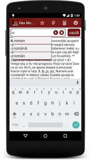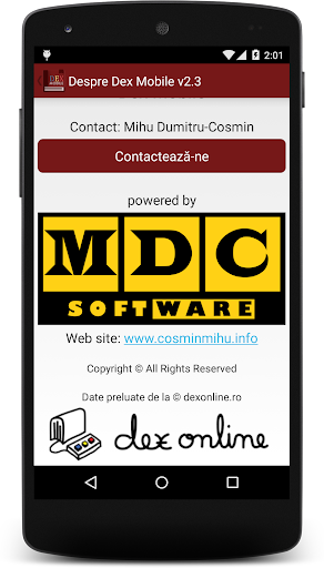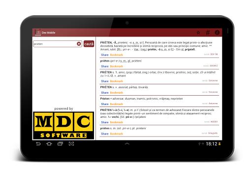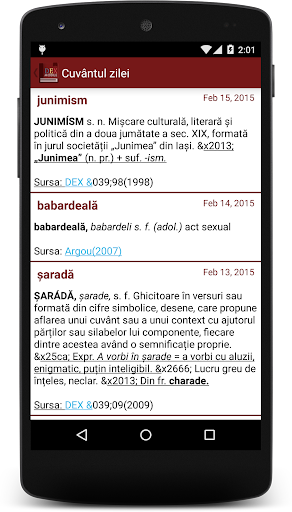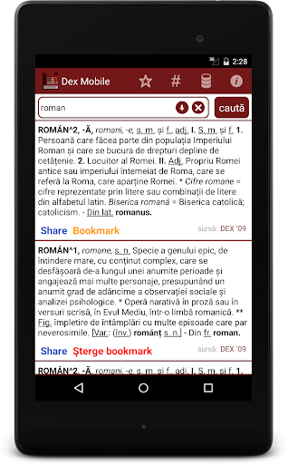 Dex Mobile - aplicaţia permite căutarea definiţiilor unui anumit cuvânt din limba română. De asemenea include lista cuvintelor zilei de pe dexonline.ro. Permite partajarea definiţiilor şi marcarea lor. Funcţionează şi fără conexiune activă la internet utilizând modului offline.