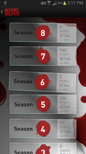 New in this update is a redesigned and improved Dexter's Disciples game, which now has trivia questions for all eight seasons of Dexter. Compare scores with your Facebook friends, earn blood slides and trophies, and try to climb the ranks from Classic Newbie to True Disciple.