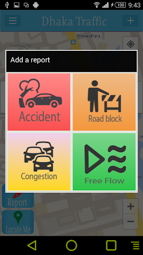 * Report about 4 basic things . accident , road block , congestion , free flow .