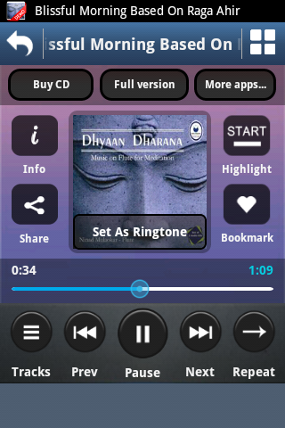 This app contains Soothing sound of the flute. Each track resembles completely different mood, which are suited best for Meditation.