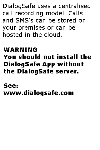Compliant SMS and Call Recording to a centralised server. Requires connection to a PBX to operate. Contact www.dialogsafe.com