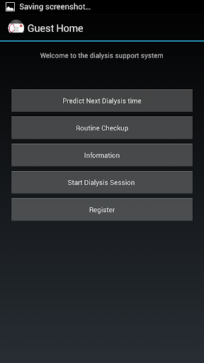 Proudly presenting the Dialysis Support System application in which we can help out all the kidney patients with our data stored and the result finding techniques. its like we receive the RFT values (Renal Functional Test) values and then from our Database we suggest the best possible result .we predict the next dialysis time and we also give the best diet information .this system is based on the best knowledge available. if you have no RFT values then it is not a problem you can just enter the symptoms and on the base of patients current symptoms the app will suggest best results that will make the patient feel like normal individual