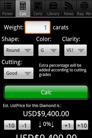 -Instantly price recalculated when color/clarity/cutting grades changed.