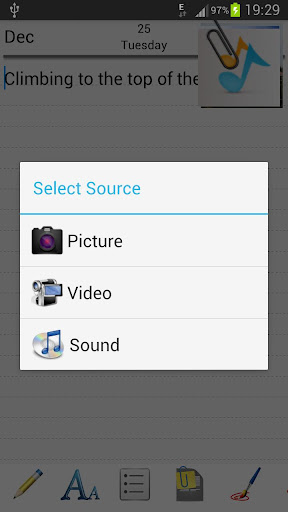 Diary is a simple application which lets you write daily thoughts/ideas/memories with a simple user interface. Make your memories more memorable by attaching photos, videos and music.