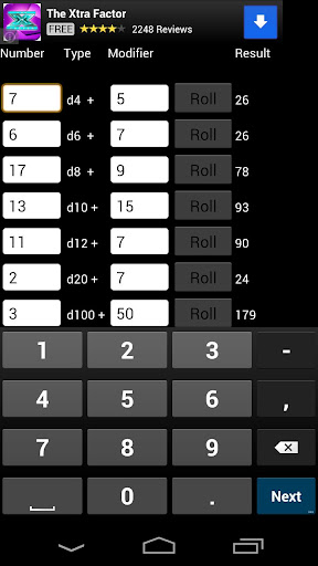 This is a dice rolling app that can roll multiple various-sided dice at once and add modifiers. You can use this to play RPGs or just to generate many dice rolls.