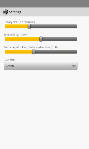 Easy to use, you only have to roll the dice. A history will remember your last throwns and yo can change the dice colour, frecuency of rolling and the time rolling.