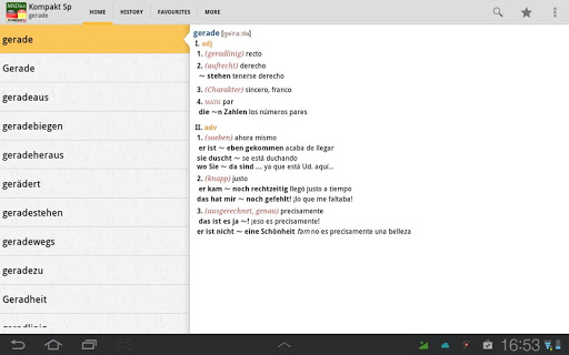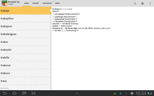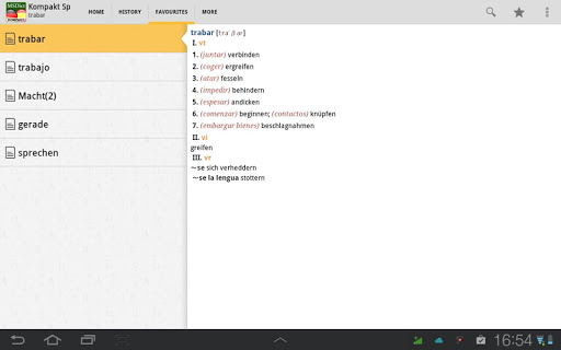 * Jump from one language direction to the other with just one click: from Spanish => German to German => Spanish and vice versa. Access linked entries, equally with just one click