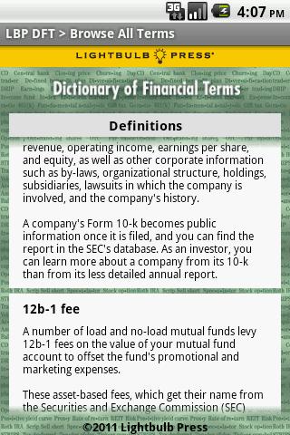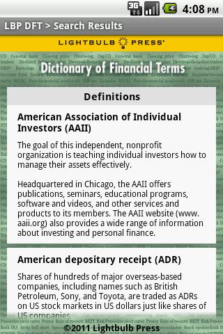 Developed by the editors of Lightbulb Press, authors of the perennially popular Guide to Money & Investing, this dictionary app makes it easy to find the definition you are look for: