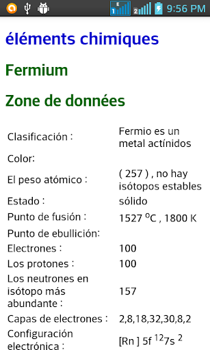 Chaque mot contient tous les termes de chimie liées avec leur description -meaning, des informations importantes, leurs utilisations. Option de recherche est également disponible, à savoir un mot.