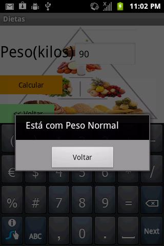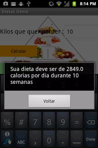 Esse aplicativo calculo o IMC(índice de massa corpórea), calcula quantas calorias você deve gastar por dia, quanto tempo de dieta deve fazer, ele também possui vários tipos de dietas para vários públicos tais como normais, TPM etc.