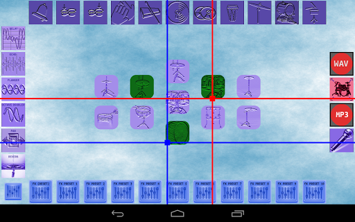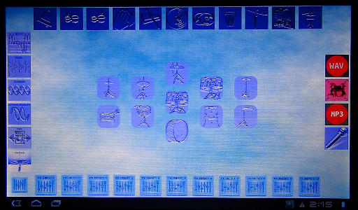* A microphone input for capturing environmental and background sounds, voice input, etc., while at the same time recording the percussion sounds created using the touch screen