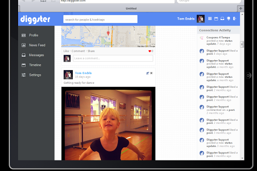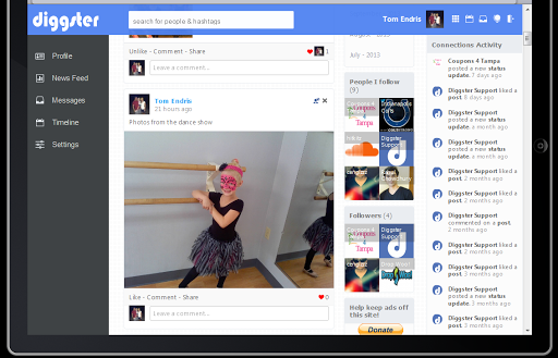 An Experiment in Simplicity. Diggster is a new social network for social addicts. Share your memories, connect with others, make new friends, all without sponsored or promoted posts. Join Diggster Today!