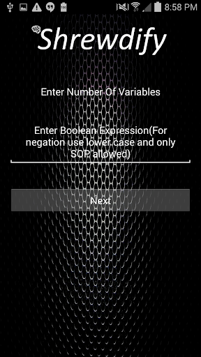 This app can also take a boolean expression in Sum of Products form and generate a truth table with all possible input values.