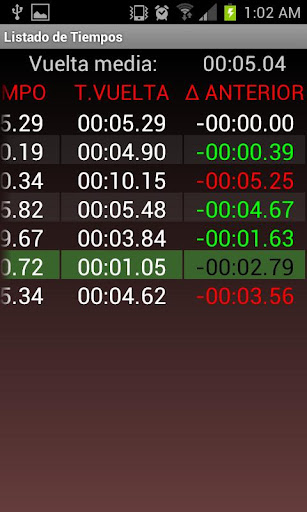 - diferencia con el tiempo de vuelta de la vuelta anterior