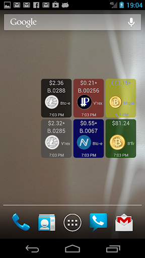 A simple widget (not an app!) that displays the current price of your favorite cryptocurrency according to your choice of exchange. You can choose to view the price converted to any of 8 major old-world currencies (e.g. USD, EUR, etc).