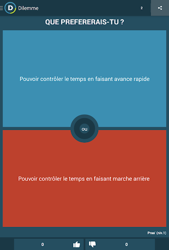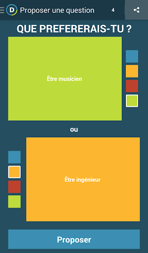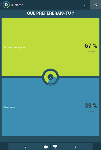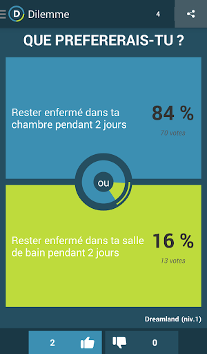 Dilemme est un jeu de sondage où 100% des questions ont été proposé et modéré par les utilisateurs.