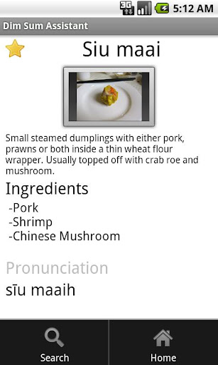 Dim Sum Assistant helps identify and keep track of your favorite Dim Sum menu items. Mark those you enjoy as favorites or try something new. Each item displays images, Chinese characters, descriptions, ingredients, and Romanization. Everything you need to aid in ordering your favorite Dim Sum items.