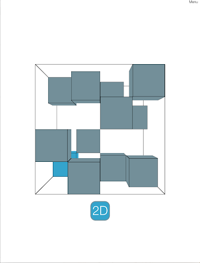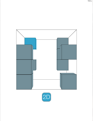 Crush all the gray cubes with the blue cube! You can view the entire puzzle in 3d and then crush the cubes in 2d. You can only move the blue cube to a position if there a gray cube next to it in 3d.