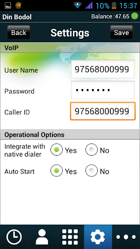 After downloading and installing the Din Bodol dialer, open the application and follow the simple wizard to set-up the Din Bodol dialer: