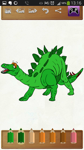 Dinosaur Coloring Book is for kids who love to play with dinosaur, tiranosaurus rex, triceratops and all legendary animals. It is for kids who like to play with coloring books and color pencils. With one click you can turn a boring picture to the picture full of plenty colors. There are no limits for your imagination. Dinosaur coloring book is easy to use and kids love it. Coloring pictures are optimized for finger of your kids.