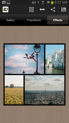 • Choose from 61 layouts and combine up to nine photos in a layout.