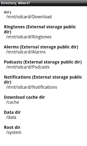Very simple application to show various directory names of your device.