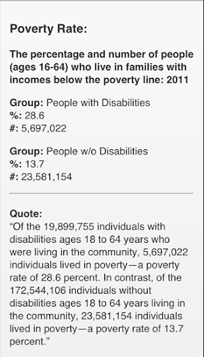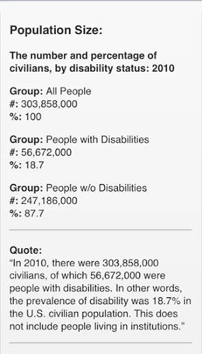 The Disability Dashboard is an application that pools disability statistics published by various federal agencies together in one place. When working on legislative and other matters relating to persons with disabilities, the Disability Dashboard will make finding and using disability statistics easier.