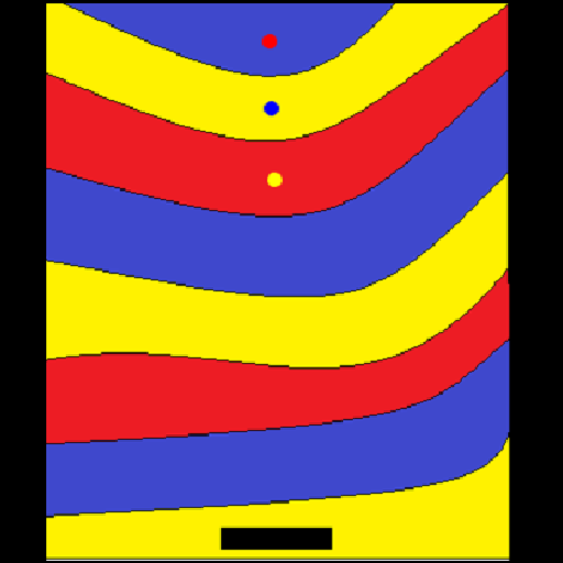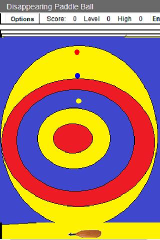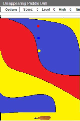 Disappearing Paddle Ball uses background colors to disguise colored balls as they bounce within a confined space and are hit by a paddle. Bumpers and increased ball speed are introduced at higher levels. The compact features of an Android device make advanced play of this game challenging.