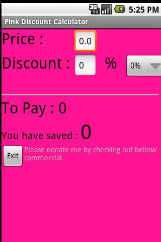 Save on discounts with discount calculator. It is PINK so it always fit to your PINK mood. It is simple and easy to use no buttons or unnecessary complications it is simple gadget for you !!!