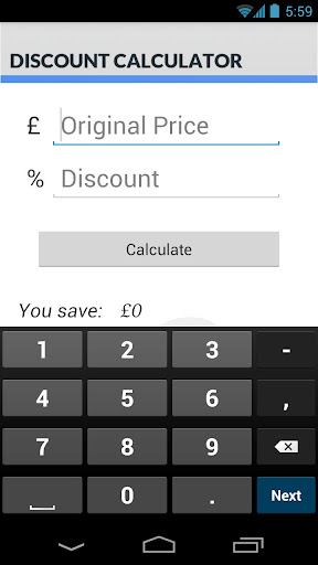 Simple and free app that calculates the final discount of any amount or how much you can save.