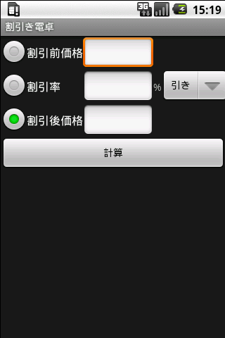 This application calculate "before discount value", "discount rate" or "after discount value" by input the other value.
