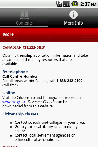 Discover Canada: The Rights and Responsibilities of Citizenship is the study guide for those preparing to meet the knowledge requirement to obtain Canadian citizenship. Discover Canada promotes to immigrants and Canadian citizens alike a greater understanding of Canada’s history, values, symbols and important Canadian institutions, such as Parliament and the Crown. It includes information on common values such as freedom, democracy, human rights, the rule of law and the equality of men and women. It also highlights the contribution of ethnic and cultural communities in shaping our Canadian identity and the sacrifices made by Canada’s veterans for our country.