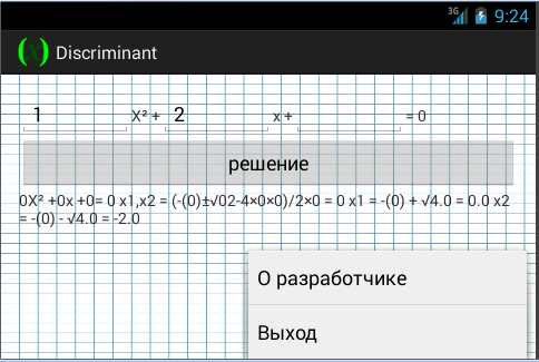 Приложение по расчету дискриминанта. Абсолютно бесплатно. Благодарю за пользование. Обо всех ошибках пожалуйста напишите в отзывах, нам этом важно! Спасибо.