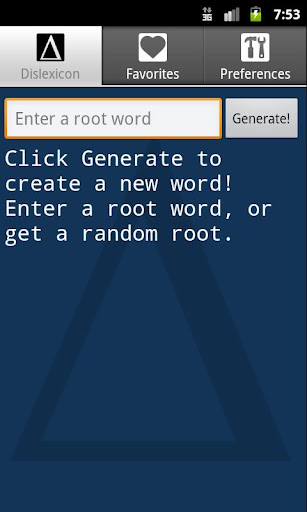 The Dislexicon is a word generator that creates new words both nonsensical and profound by combining prefixes and suffixes with any root word you provide. It will define the word for you so you can amaze your friends with your enormous, though fictional, vocabulary. It will even read the word for you, so you can pronounce it if you're illiterate!