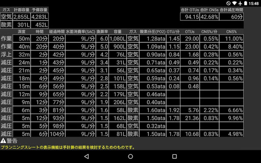 ・作業計画と減圧ガスを指定して減圧計画を算出し、ガス計画を行えます。