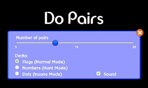 The number of pairs for each game can be chosen, it can be between 5 and 35.